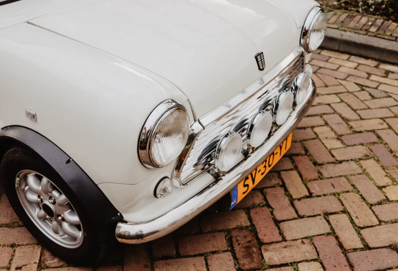 Onze witte Mini Cooper uit 1988 is een echte eyecatcher. Met ruimte voor 4 personen en een open dak is dit de perfecte oldtimer voor een vrolijke roadtrip. Rijd met de wind in je haren en beleef de nostalgie van deze iconische klassieker.